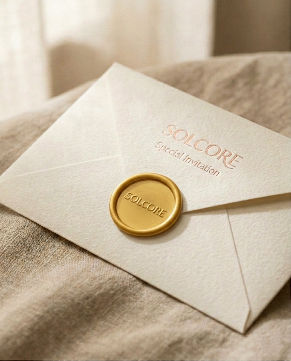 【現場專屬迎賓】:5/09 當天,當妳步入空間,一封寫著妳名字的「SOLCORE 專屬燙金邀請卡與柔金蠟印信封」將安靜地躺在妳的瑜珈墊上。請把它當作一封寫給自己的情書,在現場親手拆開。