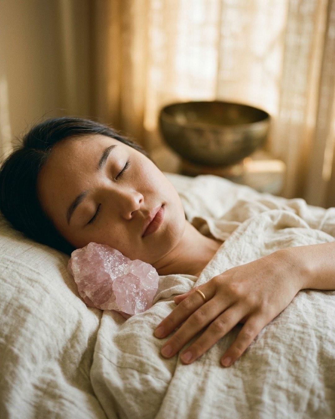 15:20 - 15:40|第三篇章:音波洗沐與心輪共振|低頻頌缽與Theta腦波潛意識引導 (20mins) 天然愛心粉晶 ✕ 潛意識引導 ✕ 頌缽低頻共振 ✕ 雙人無語凝視。