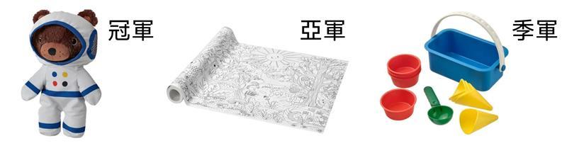 季軍:SANDIG沙灘冰淇淋玩具10件組,彩色(價值129元)及季軍獎狀