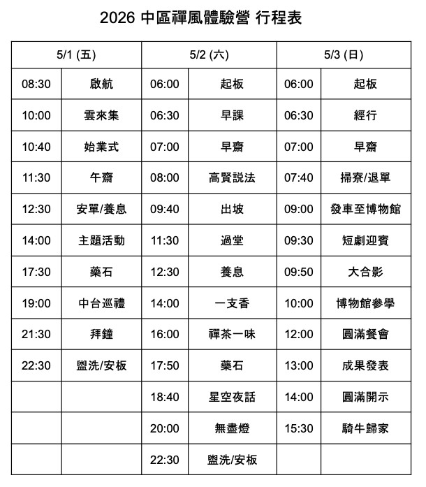 一同參與2026年禪風體驗營,找尋迷茫的答案吧!