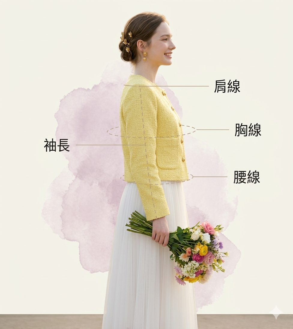 袖長、胸線、腰線、肩線,只要一點點不同,整體氣質就會改變。