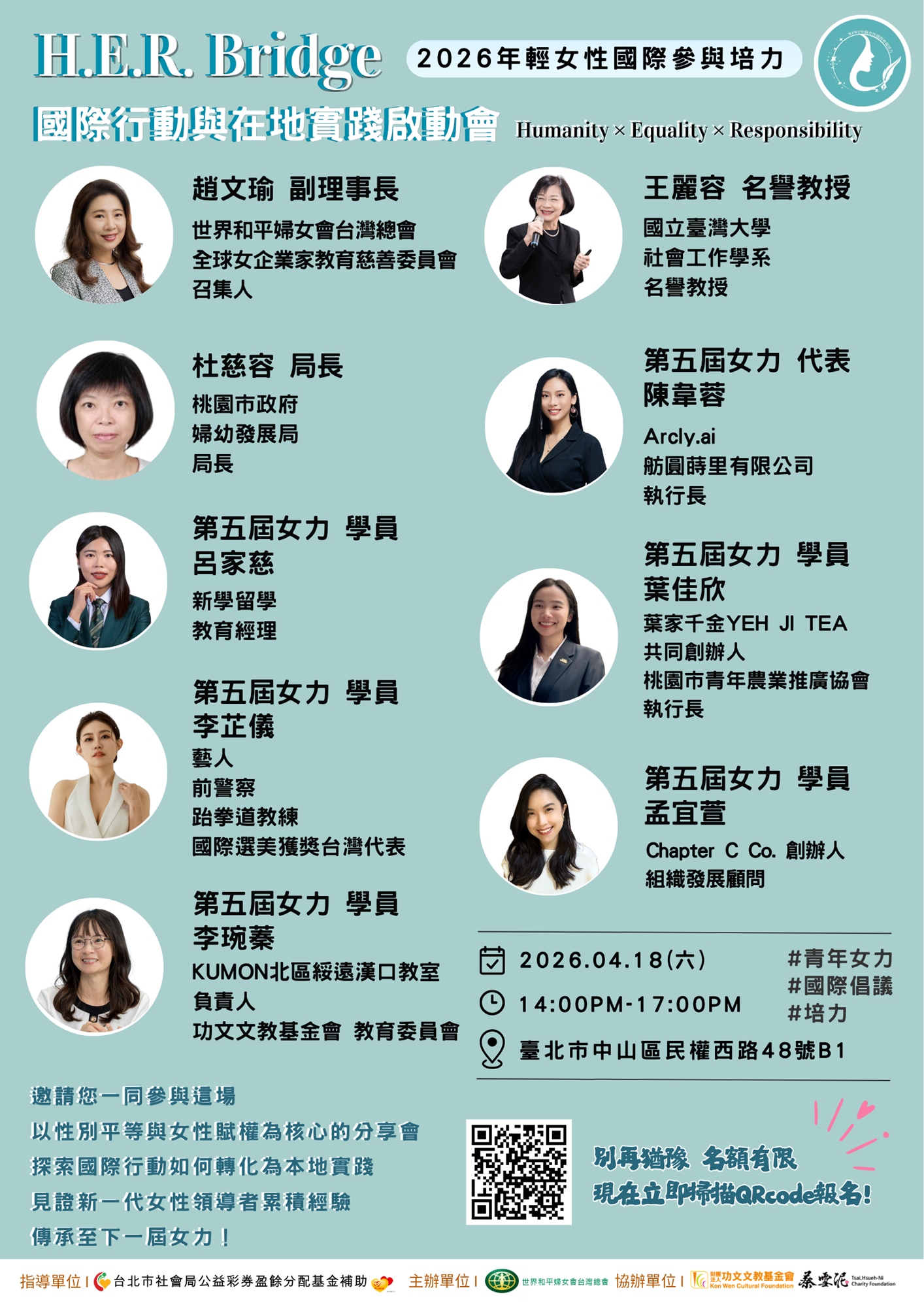 • 活動名稱:H.E.R. Bridge:國際行動與在地實踐啟動會