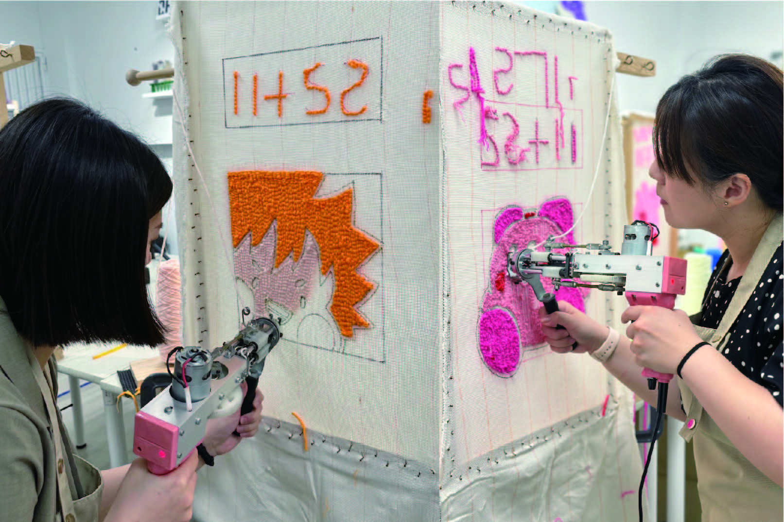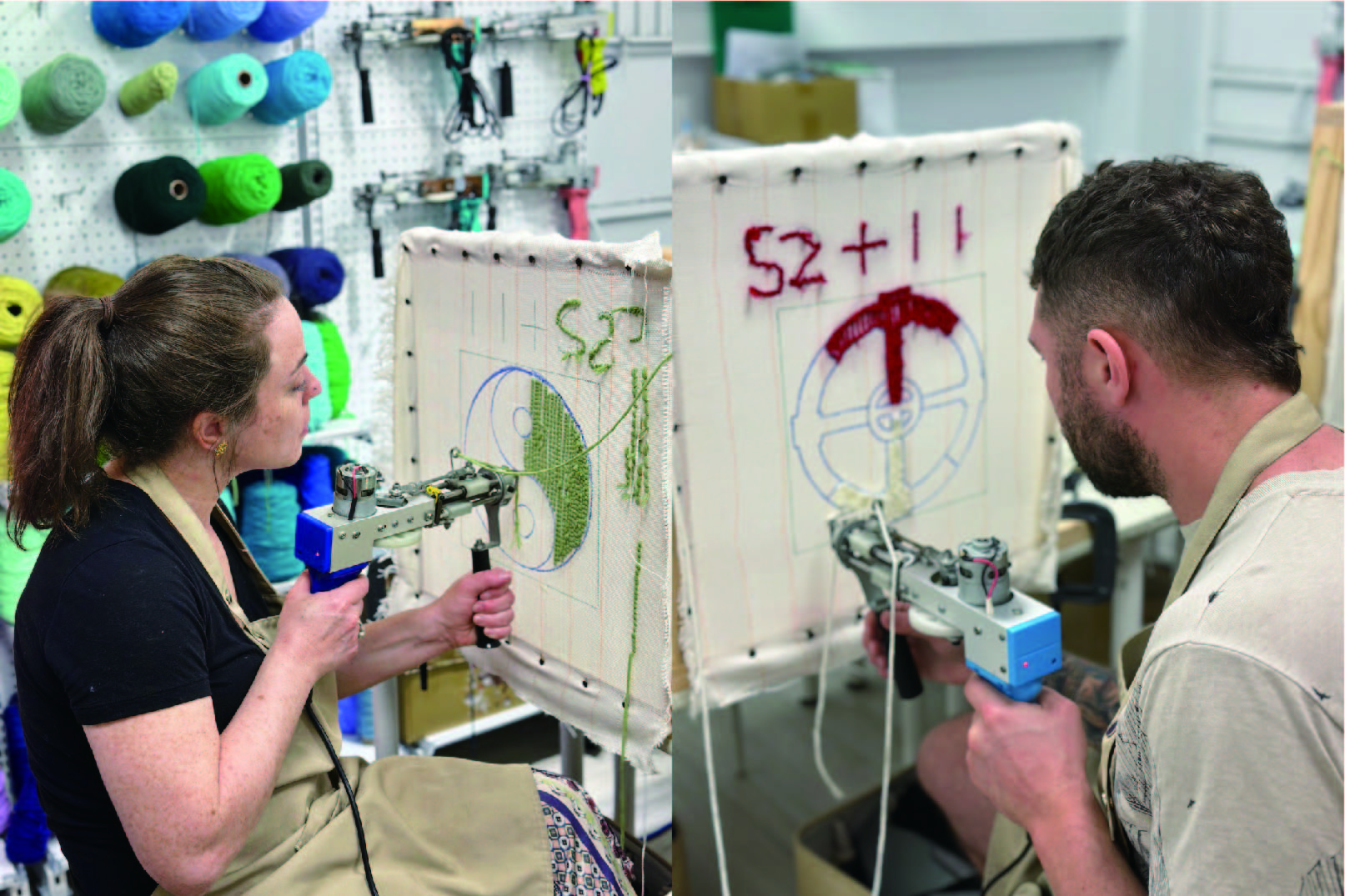 |製作過程| 使用簇絨槍為地毯打上毛線