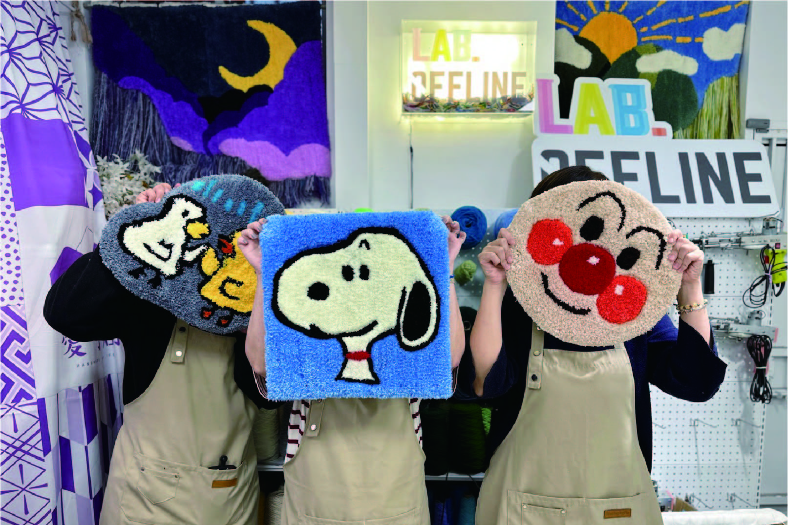 ※您可以在工作坊中選擇我們提供的圖案製作小尺寸地毯,或者也可以自己徒手繪製喜歡的圖案在底布上,老師們都會協助指導製作喲!