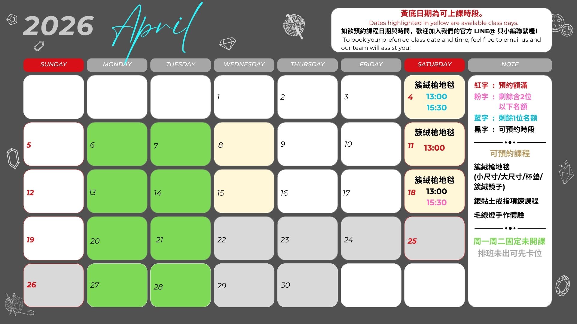 請於上課日2天前,將您想製作的圖案發送至OFFLINE Lab. 離線手作 「 LINE@官方帳號」提前讓我們評估圖案在作品的呈現度。