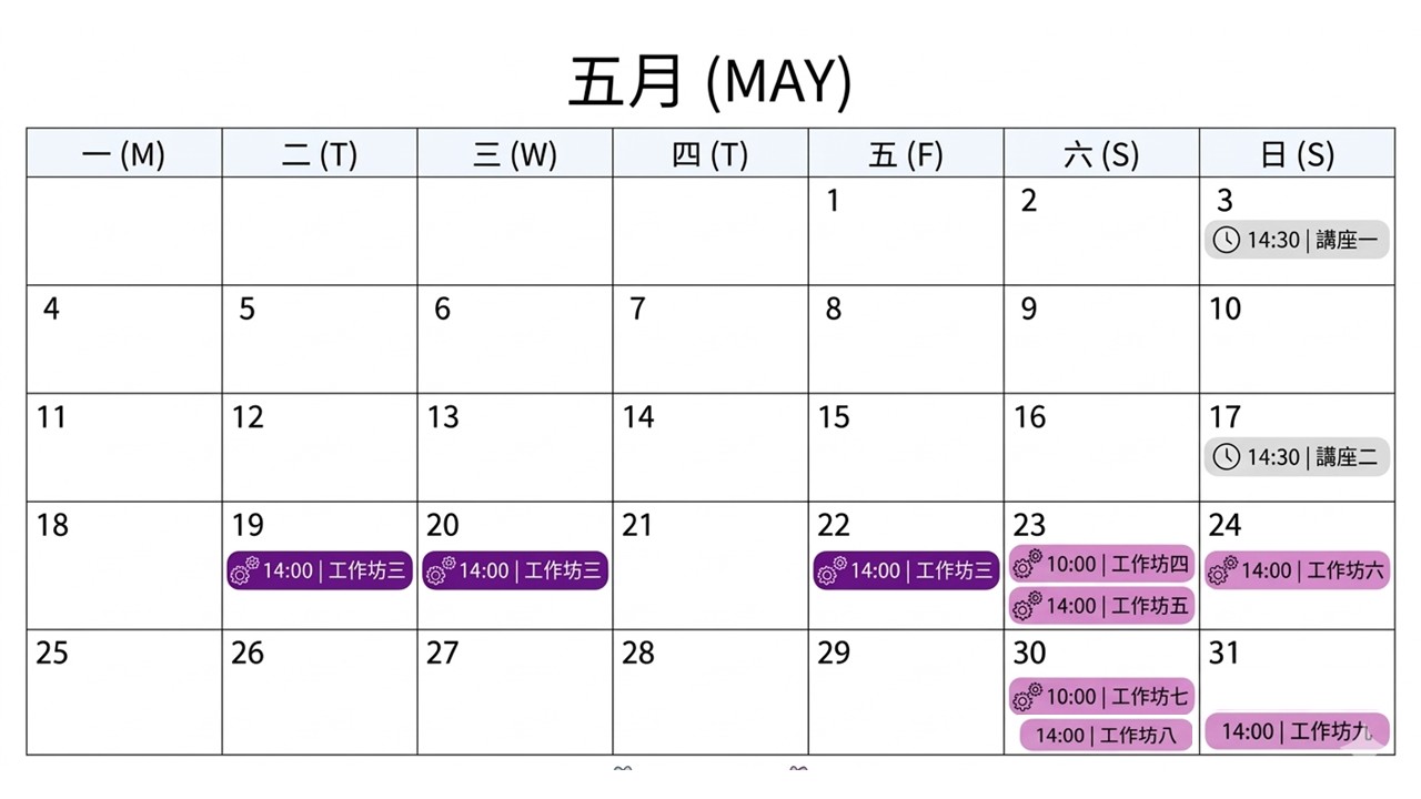 - 工作坊 第三場(輕鬆組)4/9四12:00開放報名