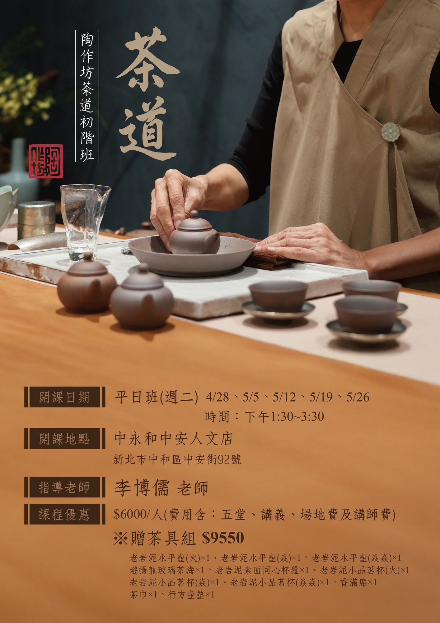 🎓 結業禮遇: 課程完成頒發結業證書,並贈送茶具組一套(總價值 9,550 元)
