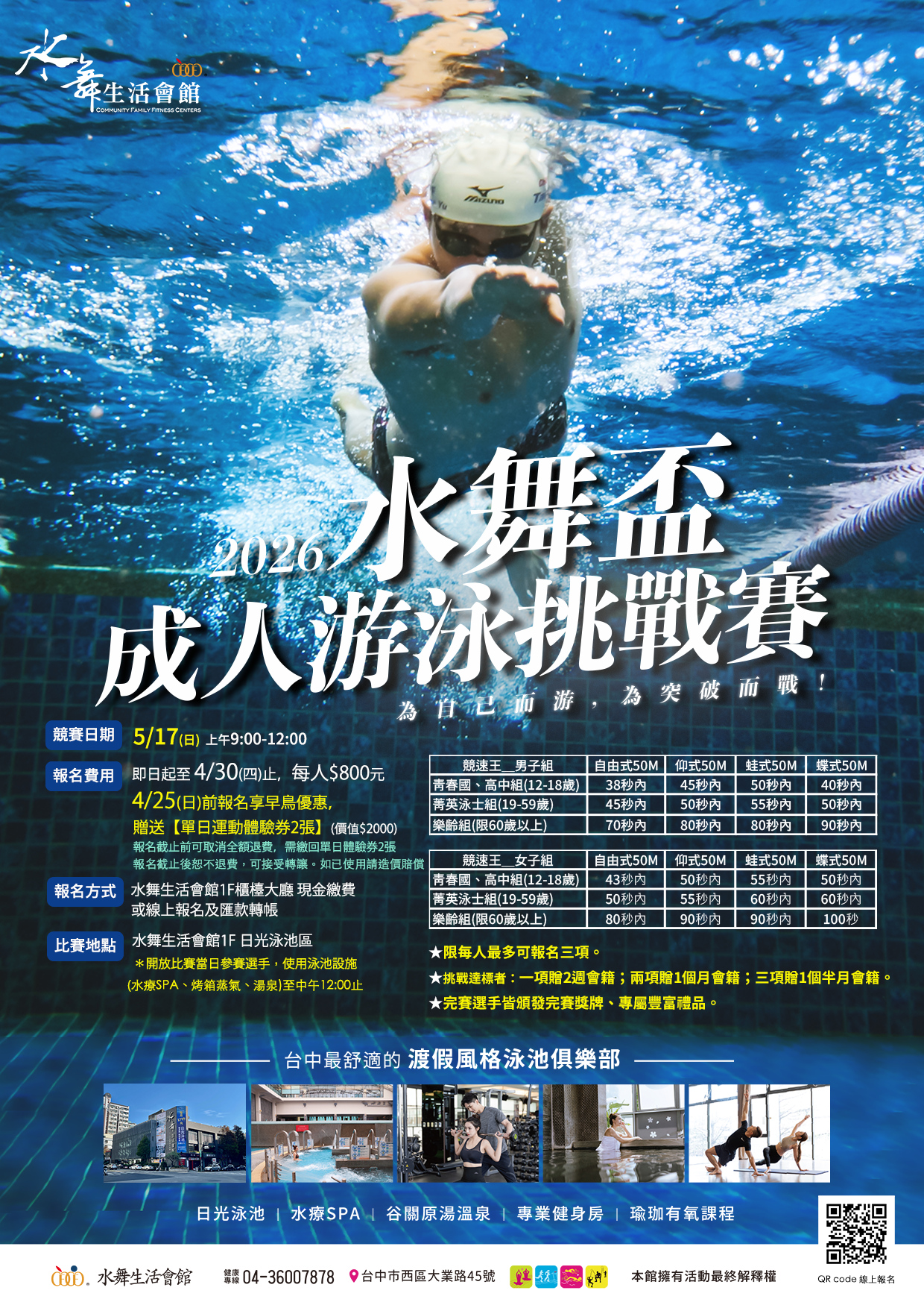 ★開放比賽當日參賽選手,使用泳池設施 (水療SPA、烤箱&蒸氣、湯泉)至中午12:00止