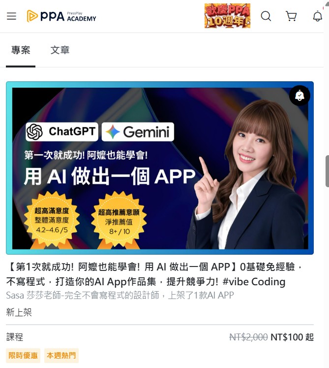 AI APP課剛正式上架到PressPlay(擁有超過140萬學員的線上學習平台),