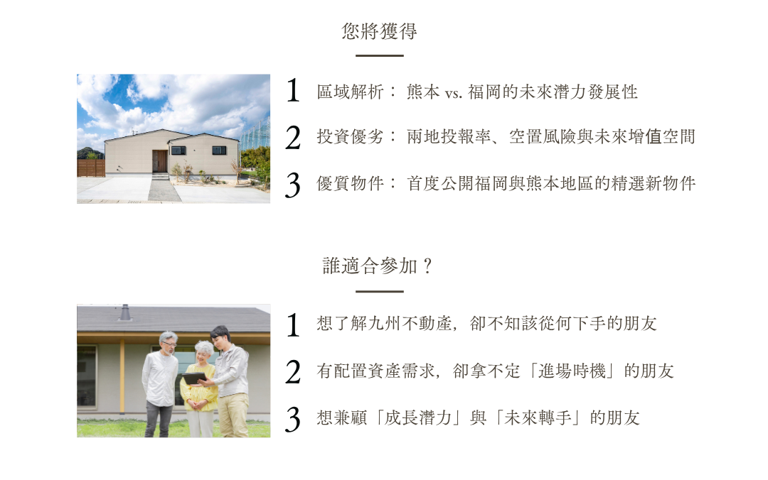 現場將剖析熊本與福岡這兩大城市的投資潛力。