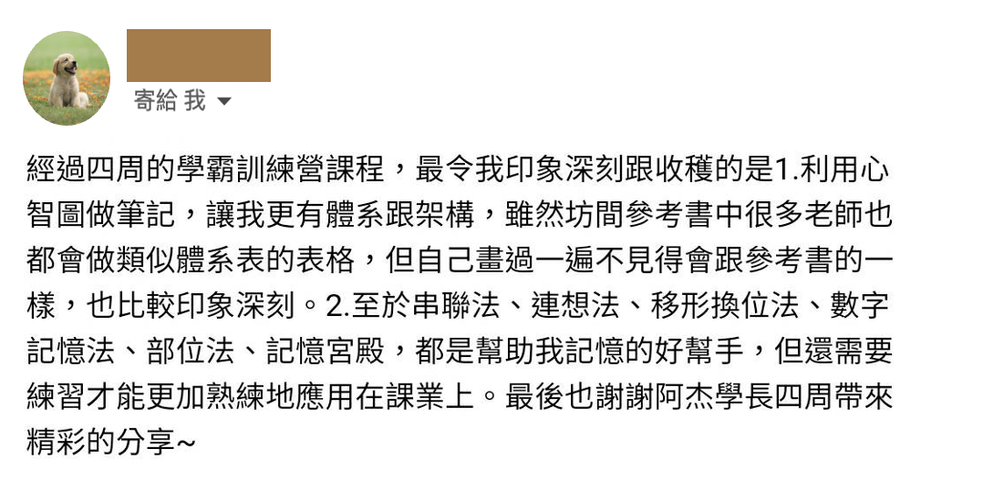 目前已幫助數百位學生,透過高效時間管理心法與工具,擺脫拖延症及手機成癮症,提升目標的達成率,不少學員因此順利考上國考,或在斜槓副業規劃上取得具體成果。